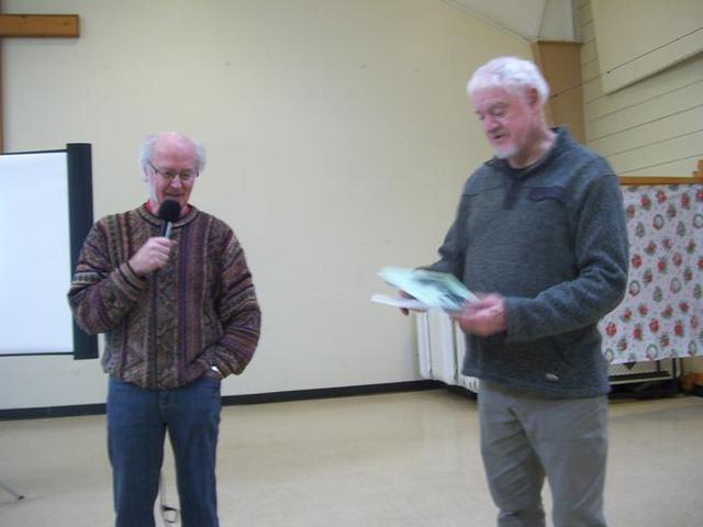 Long-time FNHA members Bob Mabie and George Crawford with their awards, June 2023