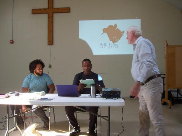 Celebration of FNHA members' Majorie Hughes and George Crawford's 90th birthdays with FNHA member Bob Mabie looking on, June 2024